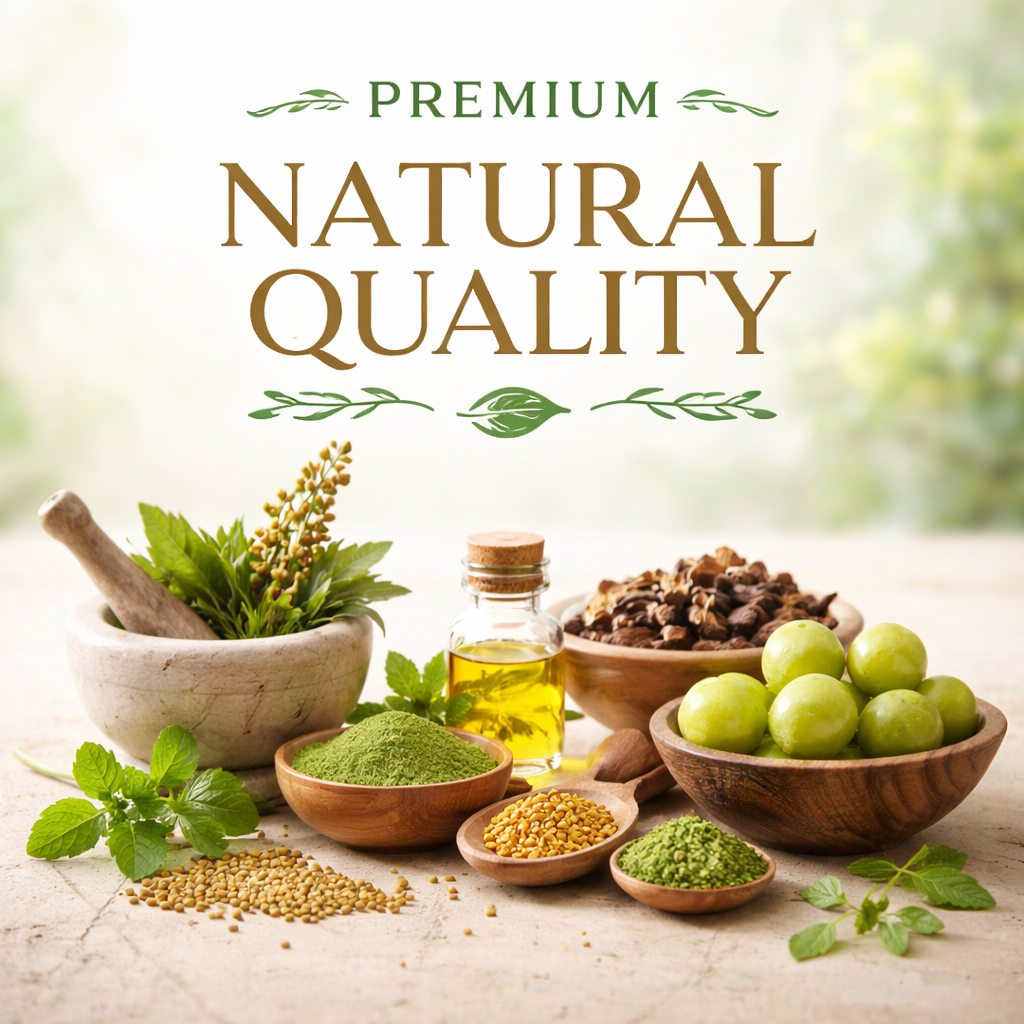 Our blends are designed to deeply nourish, strengthen, and enhance your natural beauty while maintaining the purity and authenticity of herbal care. Every product reflects our commitment to quality, refinement, and holistic wellness.